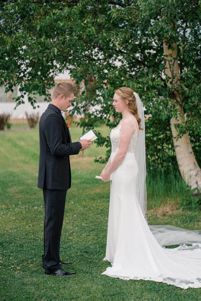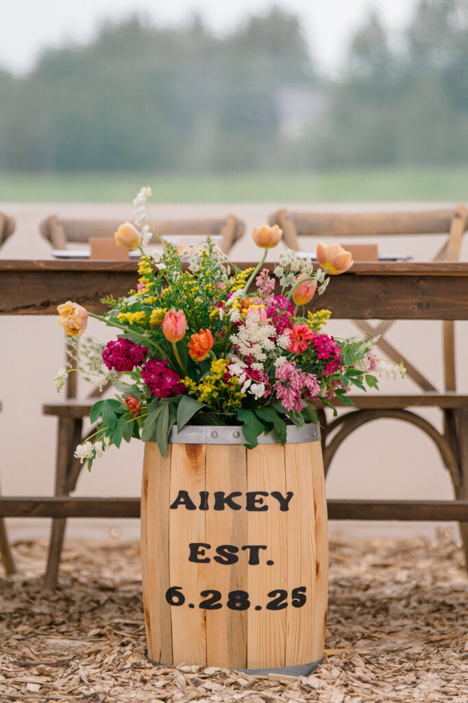 Megan and Chase’s wedding day was a beautiful juxtaposition of softness and rugged, rustic charm. The delicate floral detailing of Megan’s dress stood out against the barn’s weathered wood, creating a striking harmony between elegance and authenticity. Their western-rustic style carried throughout—from the hand-built triangle arch adorned with florals to the wide-open fields of Mountain Field Farms. Even the soft mountain light seemed to complement the natural textures and thoughtful details woven into every part of the day.