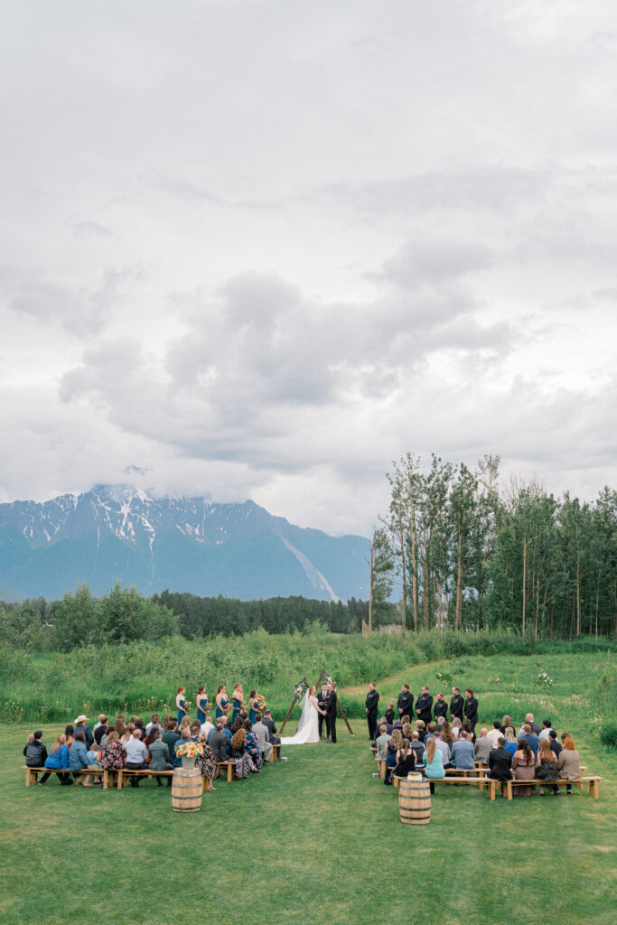 There’s something magical about weddings set against the breathtaking backdrop of Alaska—and Megan and Chase’s day at Mountain Field Farms in Palmer was no exception. Nestled beneath pioneer peak and surrounded by lush greenery, their celebration was equal parts heartfelt, joyful, and picturesque.