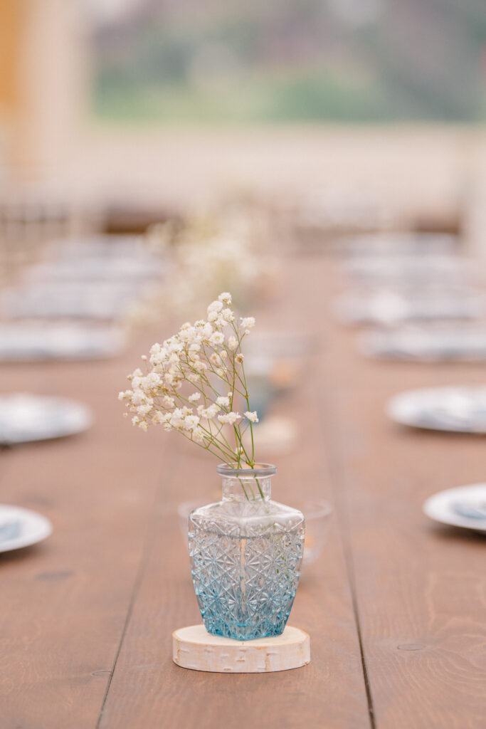 Their ceremony unfolded in an open field, with the mountains as their backdrop and their closest friends and family gathered around. After exchanging vows, Megan and Chase walked hand in hand through a tunnel of bubbles, pausing for a celebratory kiss that felt like something out of a romantic comedy. It was lighthearted, joyful, and completely them—a moment that perfectly captured the energy of their love.